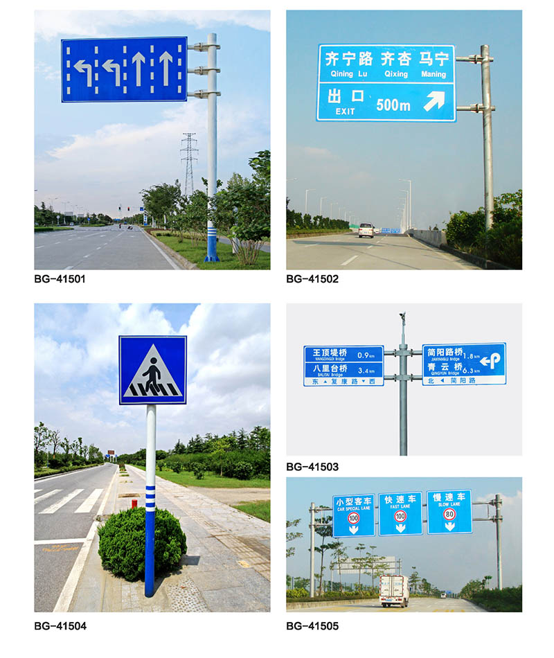 城市主次道路、高速道路、分叉路口、橋梁、機場、碼頭、車站等各類道路標志指示立桿。